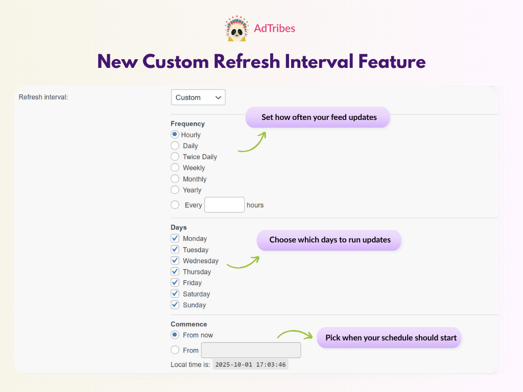 Exciting news for store owners! 🎉 We’ve just released one of our most requested features for AdTribes: custom refresh intervals for product feeds. Now, you can schedule product feed updates exactly when they make the most sense for your store. This unlocks next-level flexibility, control, and efficiency for your WooCommerce product feeds.