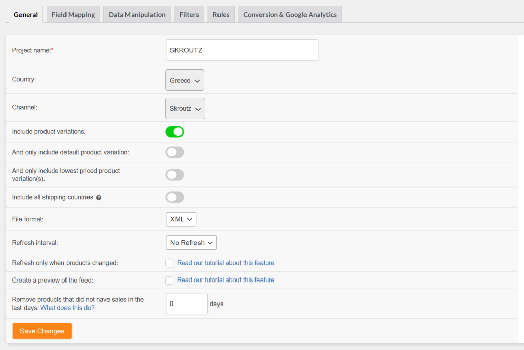 - Remove Products Without Sales: Leave this 0 — Skroutz does not filter based on sales history, so all relevant products should remain in the feed.