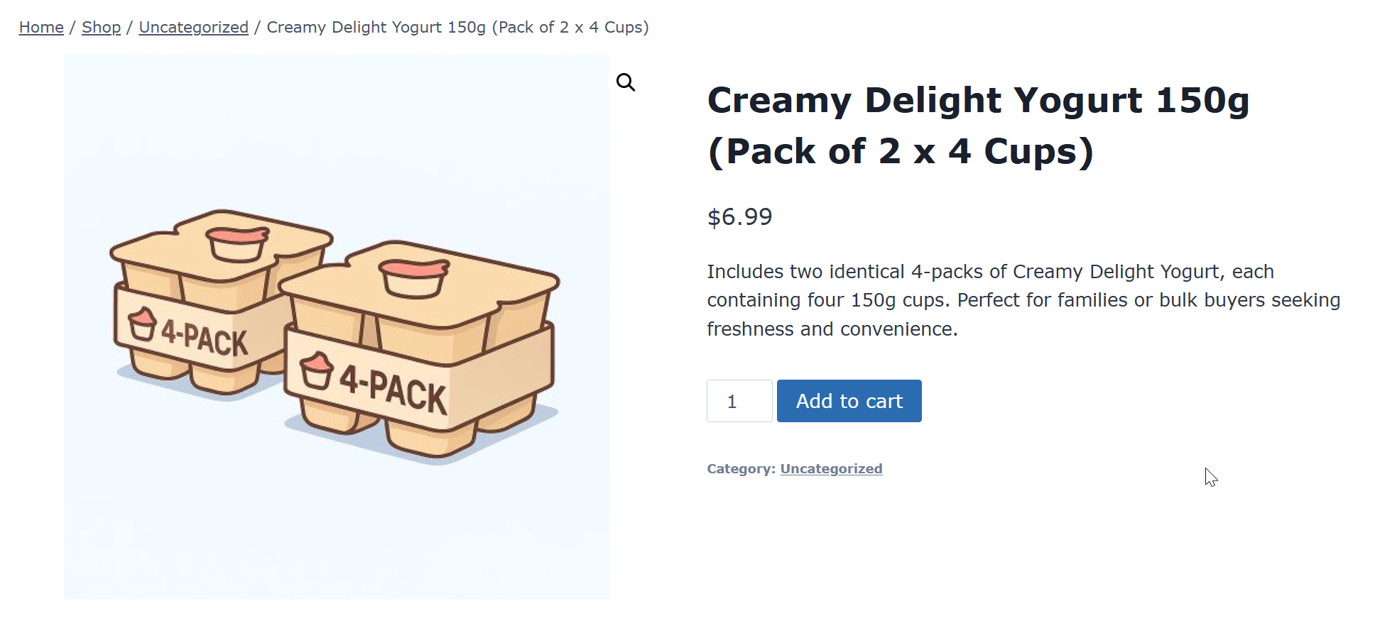 | Description | Includes two identical 4-packs of Creamy Delight Yogurt (8 cups total). |