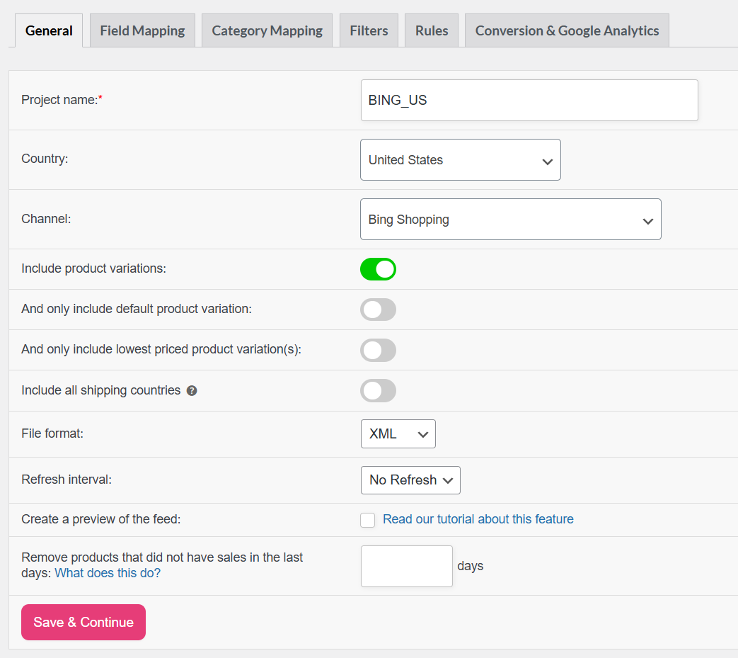 | Project Name | Give your feed a clear name (e.g., BING_US) |