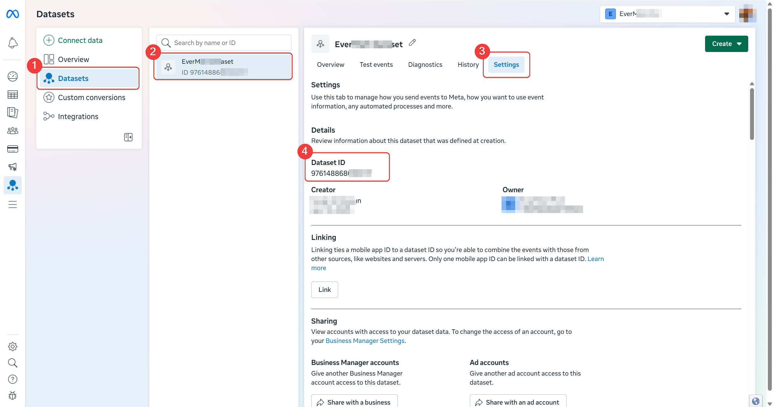 If you don’t yet have a Pixel ID, follow the steps below to create or find your Facebook Pixel ID in Meta.