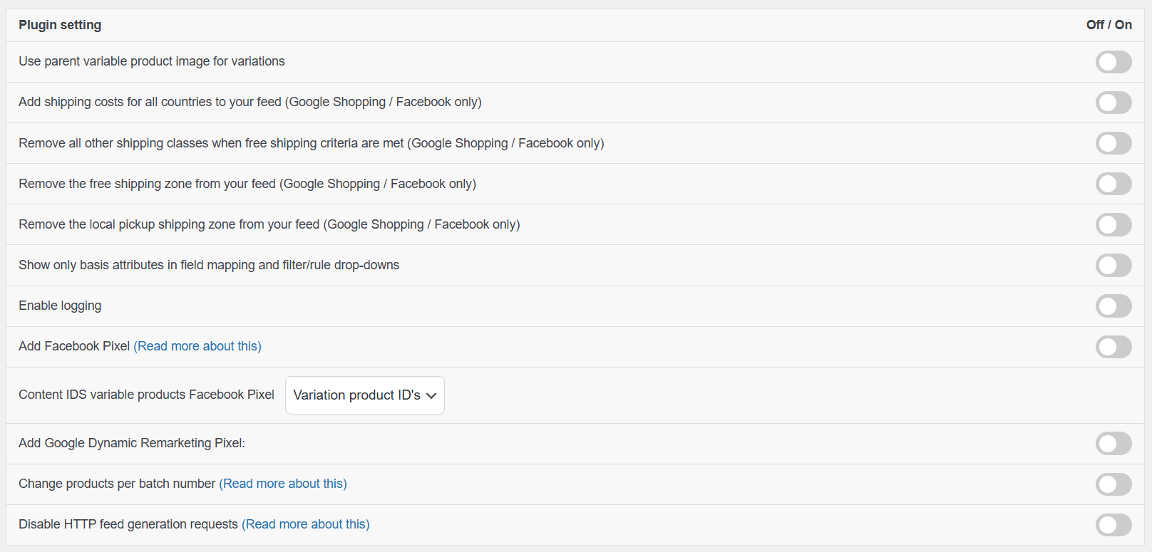 This setting replaces each variation’s image in the feed with the parent product’s main (featured) image.