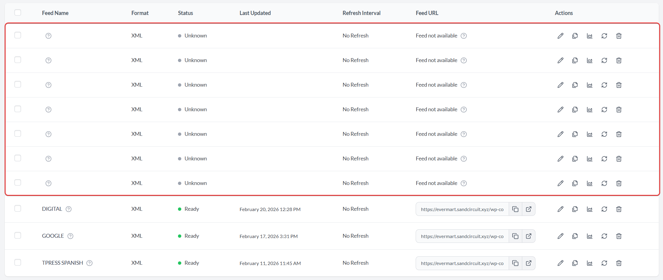 In some cases, the system may generate empty or duplicate feeds, as shown in the screenshot below.