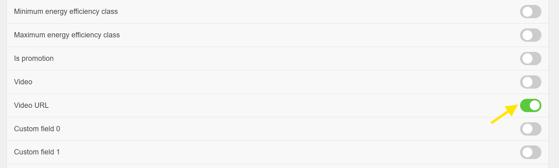Look for “Video URL” and toggle it on. Once enabled, this adds a Video URL field directly to the product editor.